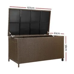 320L Garden Shed Outdoor Storage Box Bench Toy Tool Box Ottoman Wicker Brown Gardeon
