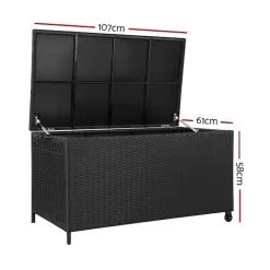 320L Garden Shed Outdoor Storage Box Bench Toy Tool Box Ottoman Wicker Black Gardeon