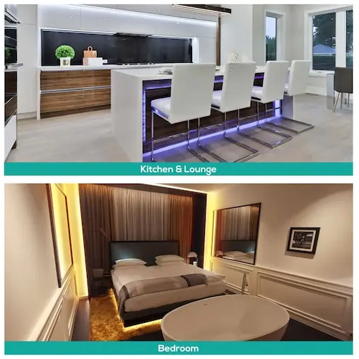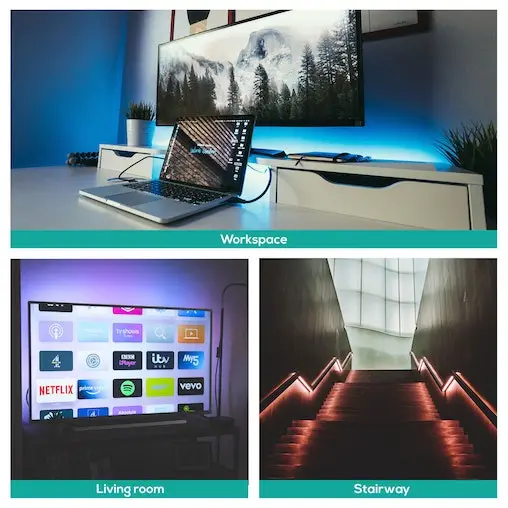 The smart LED light strip is adjusted easily, simply cut your custom length to fit into different areas of your space.