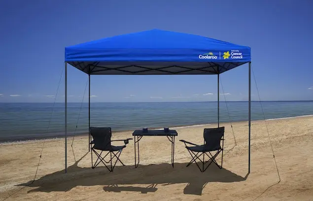 The Coolaroo All-Rounder Pop-up gazebo features a durable powder-coated steel frame and a heat reflective 150D Polyester canopy with a UPF 50+ rating and is Cancer Council endorsed. It also features finger-friendly finger push lock buttons for easy single-person assembly and comes in a wheeled carry bag.