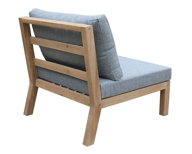 The Cooper double lounge is made with sustainably sourced Acacia FSC timber in a lightened teak colour with a premium Olefin back and base cushion in soft grey and contrasting lumbar cushions included. Each module is generous in size and can be bought seperately to build up a large lounge or as two or three pieces for a smaller space.