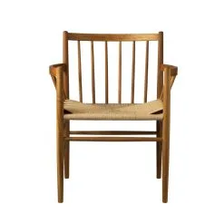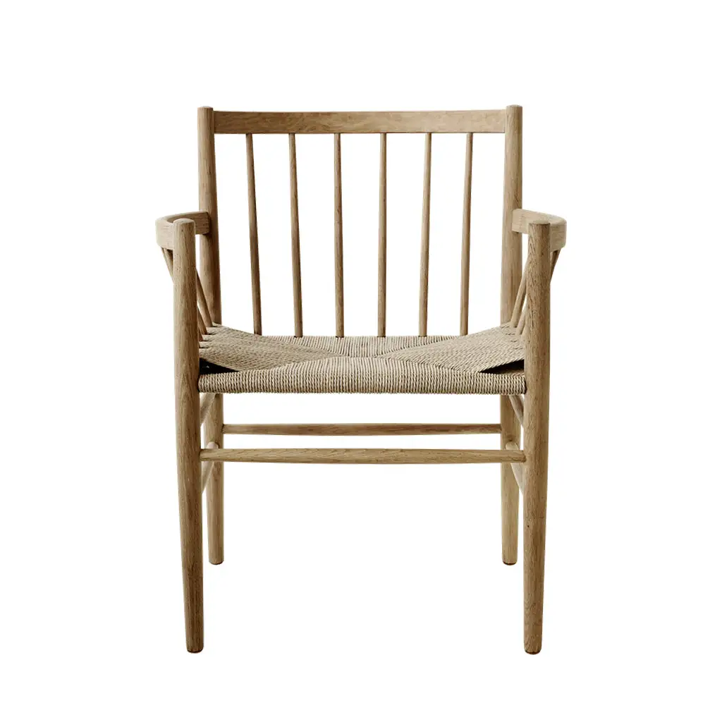 A classic wooden chair with rotated oak sticks and a braided seat – a natural quality and material choice that is as current today as when the chair was created in the 1950s. It’s clear functionality, craftsmanship and comfort is a signature of Jørgen Bækmark’s work. Suitable as a dining chair as well as a feature on its own.