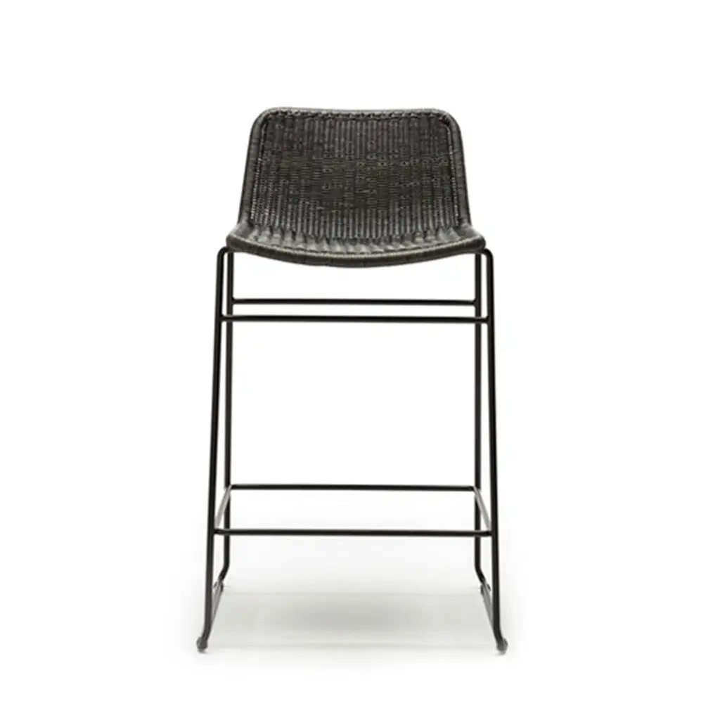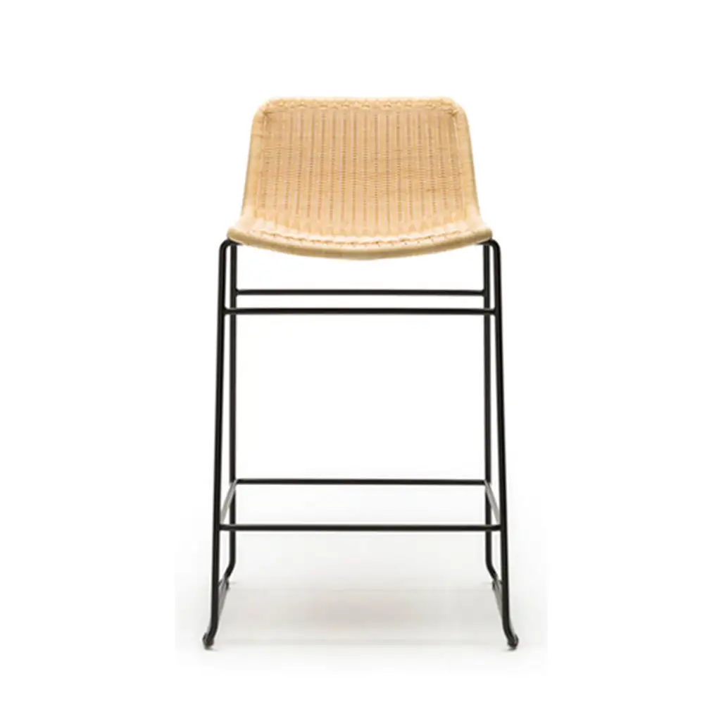 The C607 barstool designed in 1964 by Japanese designer Yuzuru Yamakawa is a sophisticated and sleek barstool with its sleigh leg and minimal lines. The shell of the C607 stool is made of natural or charcoal rattan with a black frame. The C607 stool is also available in an outdoor/indoor version in black, white and natural.