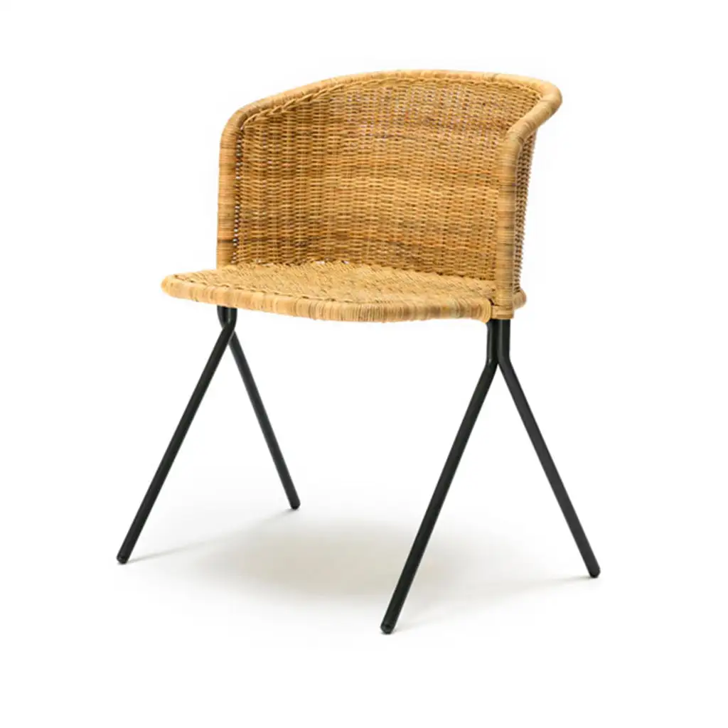 The Kakī Armchair features a woven rattan seat and is defined by its cantilevered leg frame, much like their feathered namesake, New Zealand’s endangered native black silk. The timeless warmth of the rattan complements the charcoal powder coated frame. For indoor applications, the Kakī Armchair is available in a natural, graphite or rust stains. An outdoor polyethylene version is available upon request.