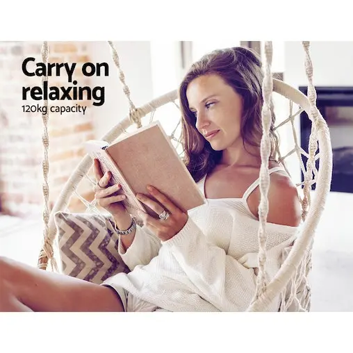 String it over a tree, mount it at a verandah or install it inside the house, the Hammock Chair hangs well in any place for a very unique décor. It can support up to 120kg and is strong and durable for longlasting use. You can rest assured the Hammock Chair is the perfect spot to ponder and relax with soft comfort.