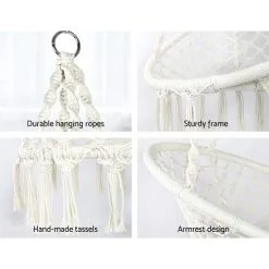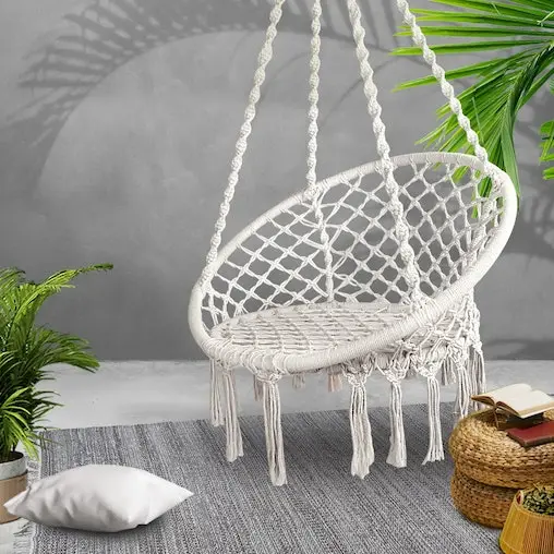 Lazy days and chill out moments. Somehow, they seemed to go better when swinging the time away in our beautifully-crafted Hammock Chair.Designed to cup you in the best way possible, our Hammock Chair is extremely relaxing to sit on with ample support for your back and arms. Built of a sturdy structure wrapped in a mix of polyester and cotton fabric, and adorned with lovely handcrafted tassels, our Hammock Chair has all the right vibes of days spent enjoying your favourite past times suspended in mid-air with nary a care in the world.
