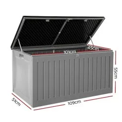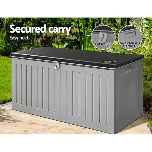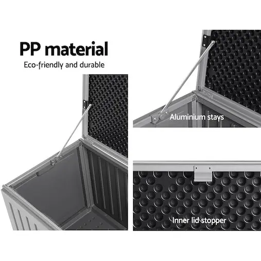 Stylish and modern looking, our Gardeon Outdoor Storage Box is just perfect for storage outdoors and indoors. With a large storage capacity of 270L, the box is totally practical in every way. Use it to store anything, from gardening paraphernalia to collectibles to books, clothes or even beddings. Made of durable and weather-resistant PP material, the box does not rust and can stand up to robust use with ease. It comes with an aluminium hinge and inner lid stopper for hassle-free use. The integrated handles make it easy to carry it around, while the lockable lid helps to keep things safe and secured. Better still, the storage box can also double up as a bench for casual seating anytime. It is also easy to assemble with no tools required.