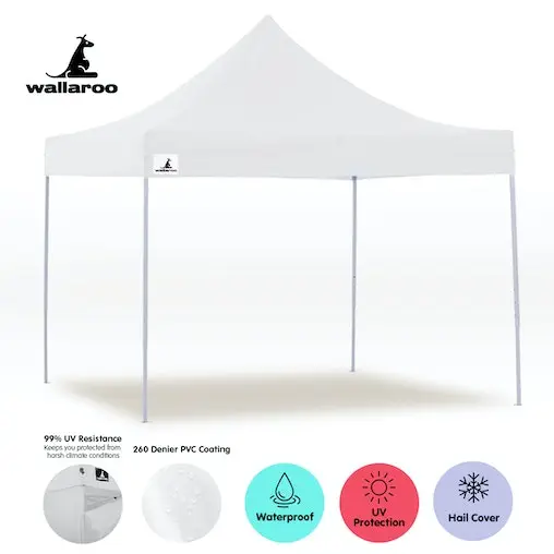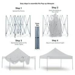 These folding marquees are the ideal solution to protect your next outdoor bbq event or party from that ‘chance of rain’, or as a large, lovely sunshade retreat for guests. Have one on standby for your next home or office event.