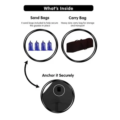 Everything you need: As well as the main unit and 5 walls this combo pack also comes with a handy carry bag and sandbags to help secure your marquee.