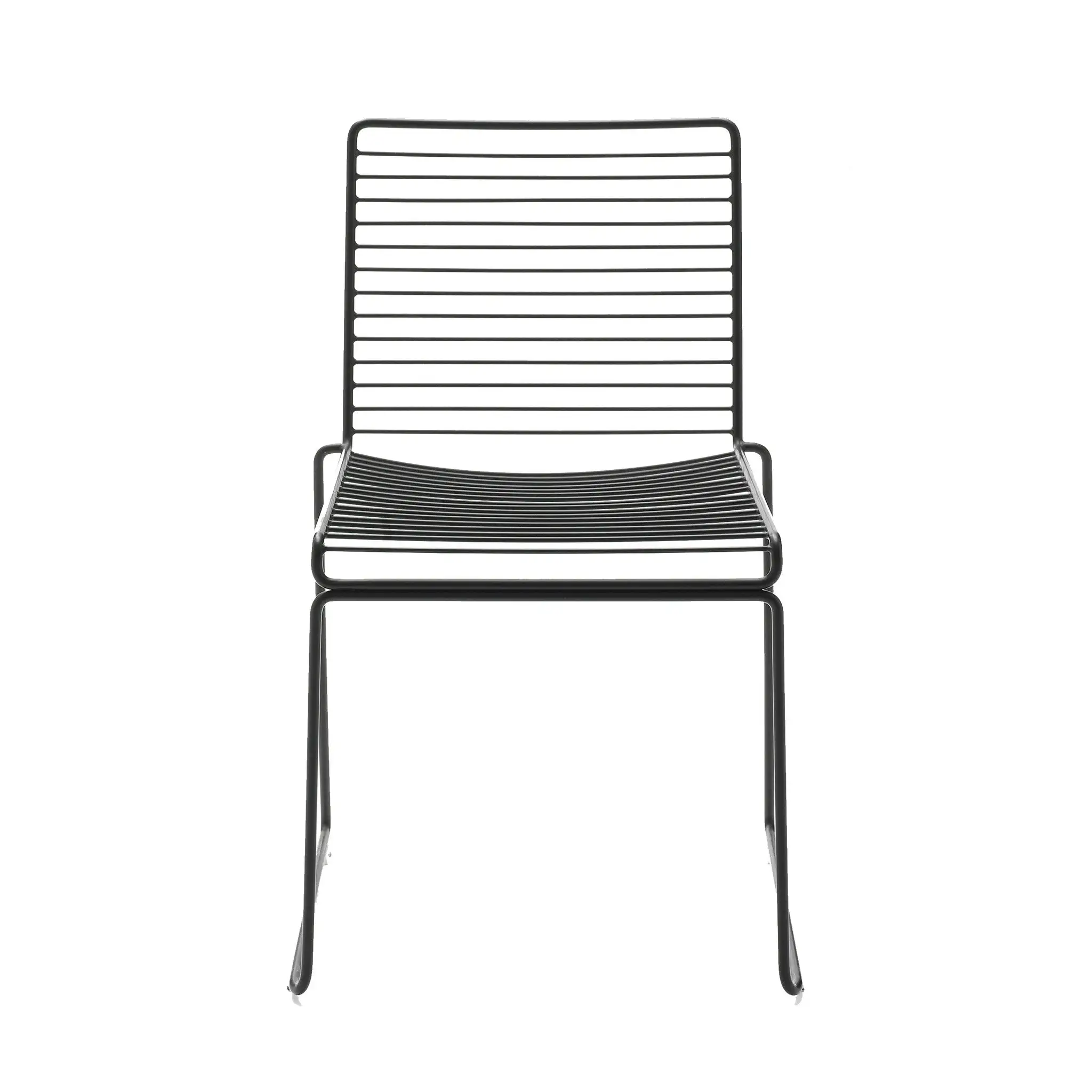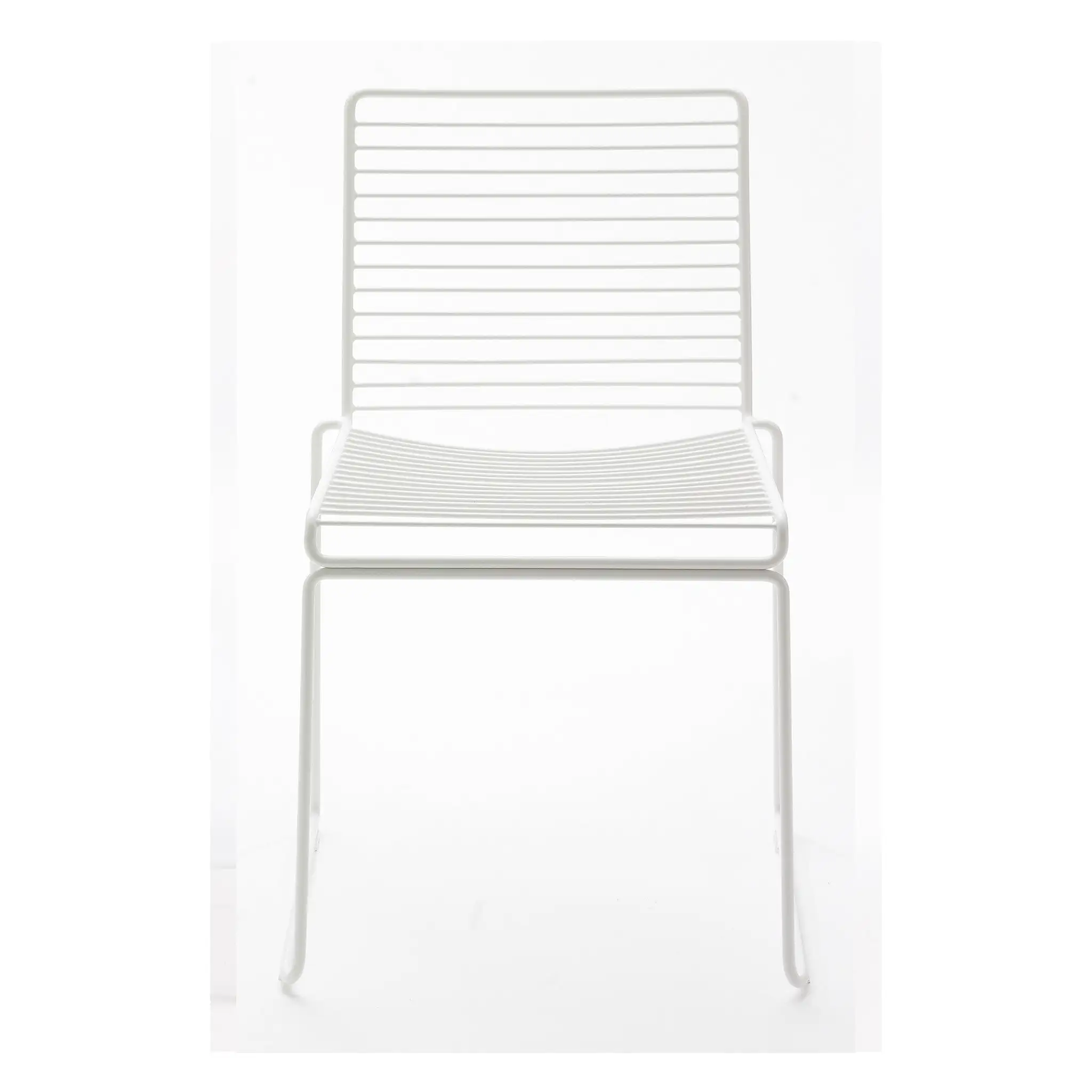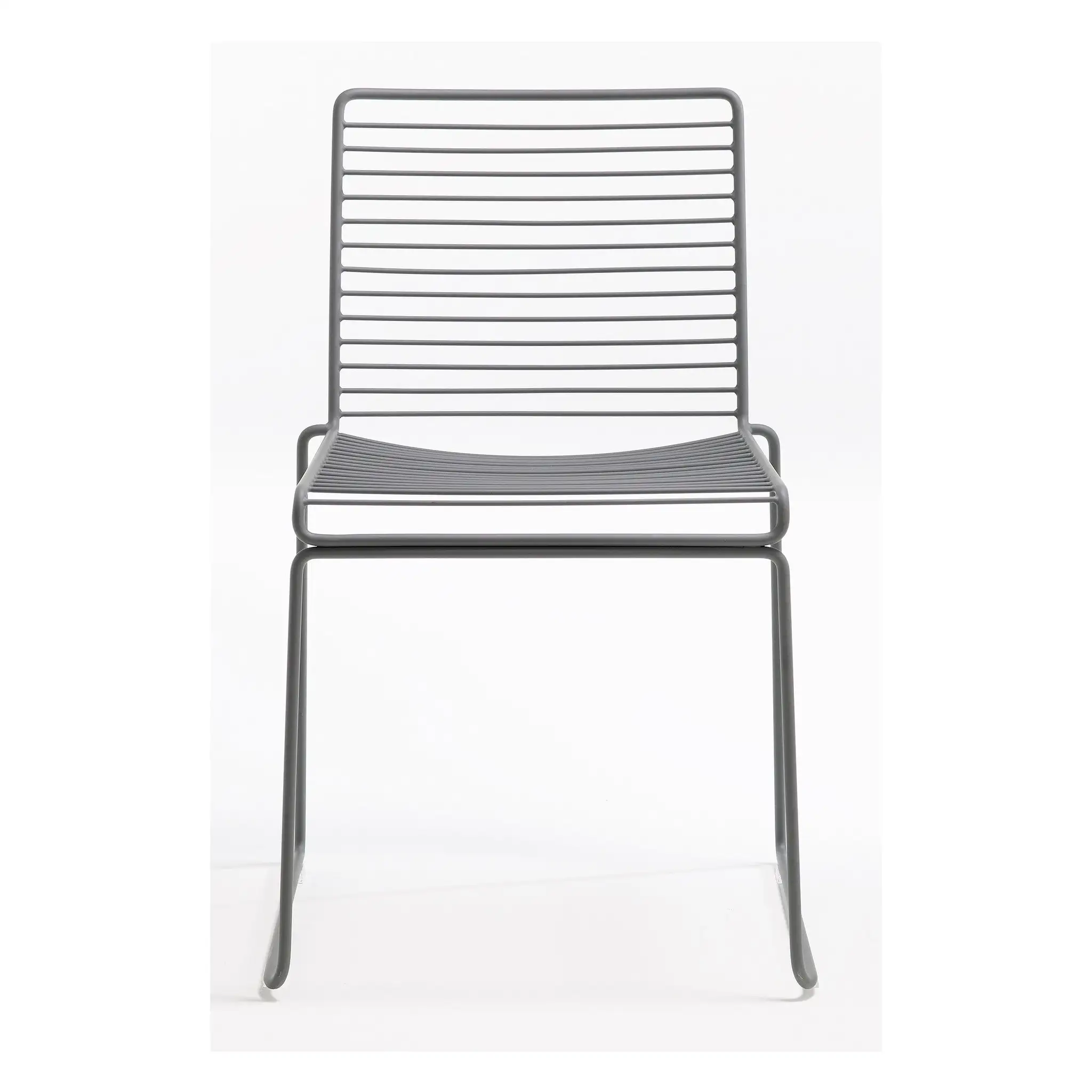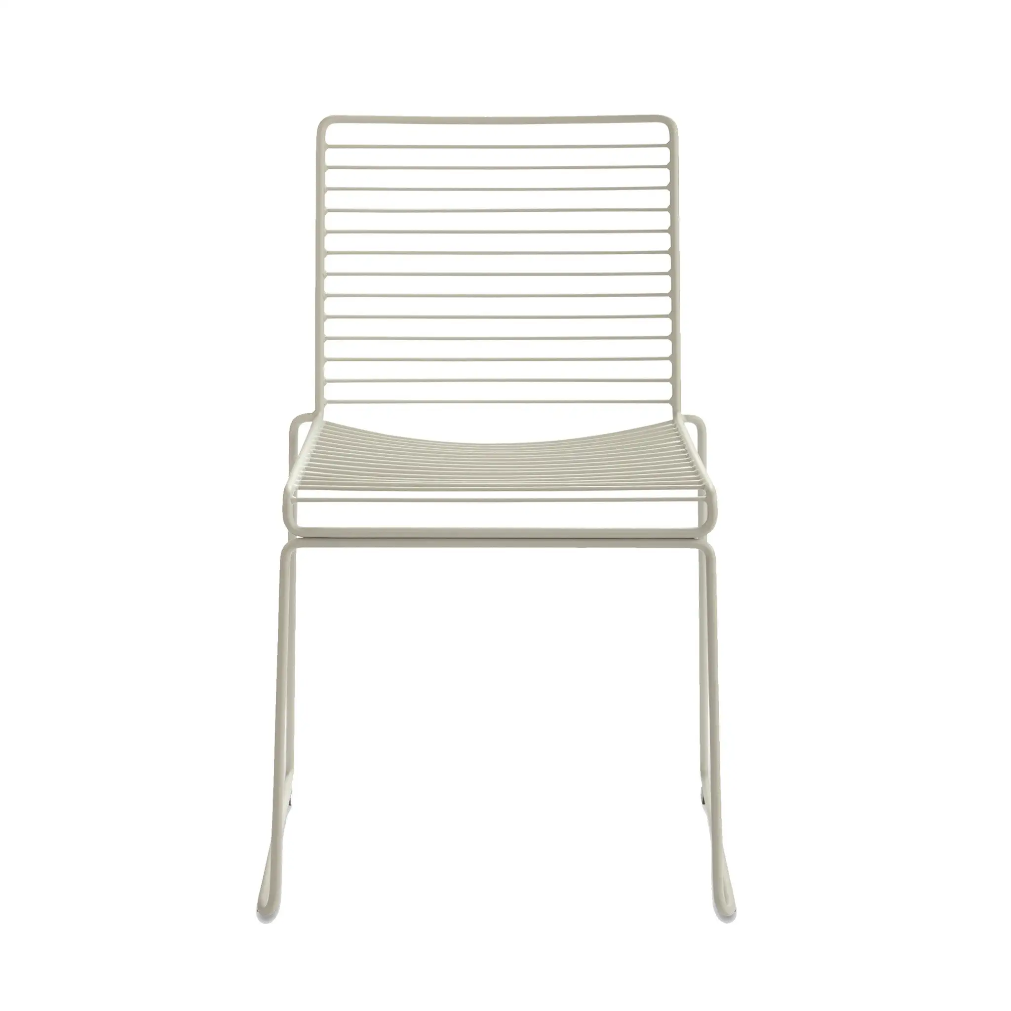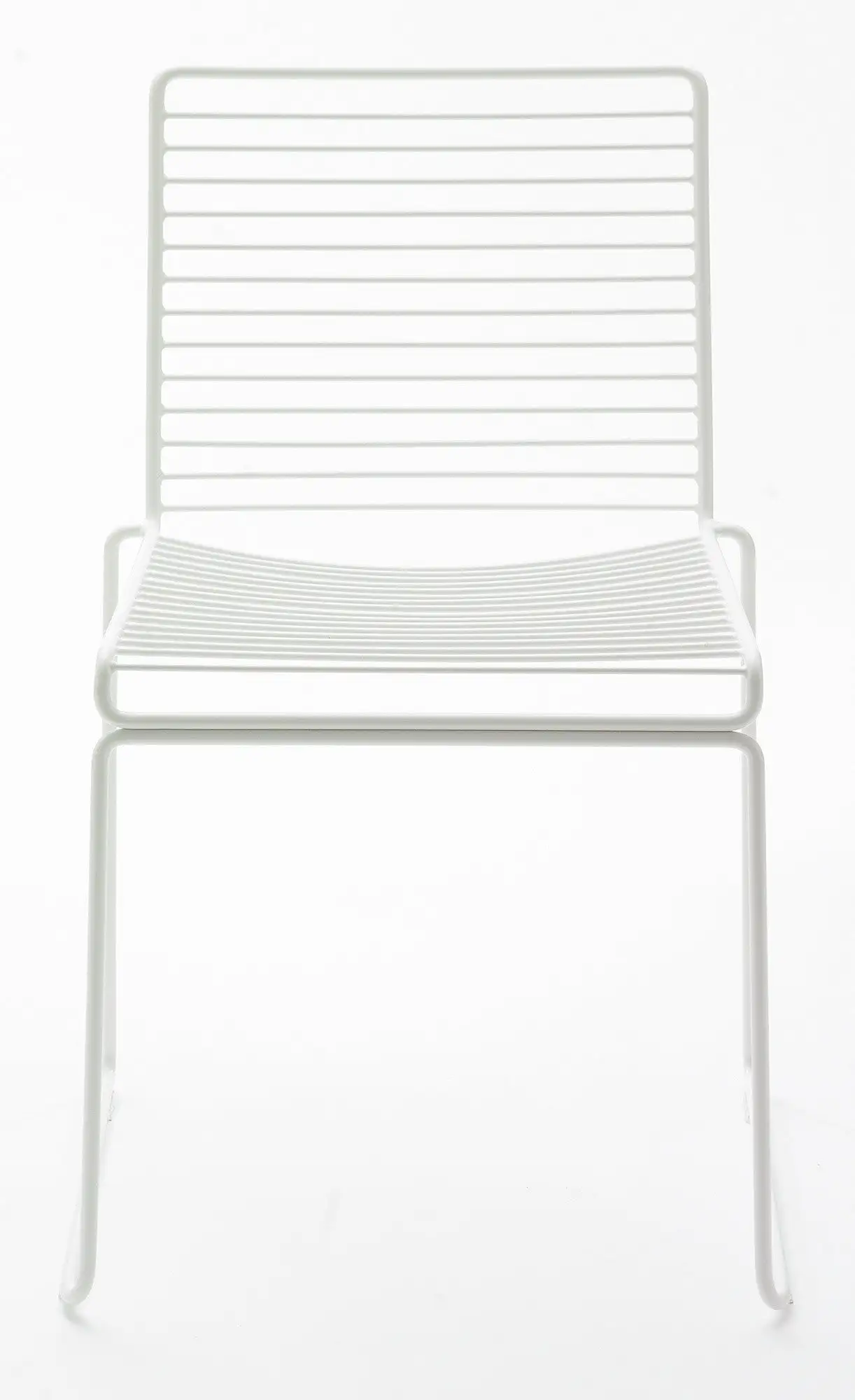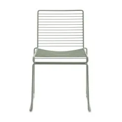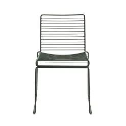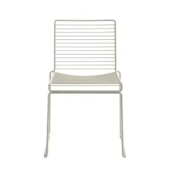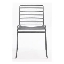 The metal wire is electro-galvanized before it is lacquered, which makes it rust-resistant and perfect for outdoor use. The chairs can be linked together in rows for conference use, and the new colour scheme keeps the Hee chairs updated.