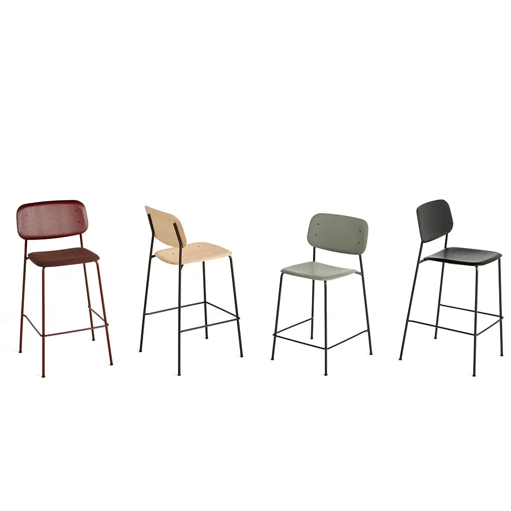 Iskos-Berlin’s Soft Edge series blends strong curves with extreme lightness to create a three-dimensionality that is not normally possible with 2D plywood. This series was made possible by exploring innovative developments in moulded plywood techniques. All the edges of the ultra-thin, soft-formed seats are bent away from the body, designed to optimise human-centric comfort for constant shifting and movement. The soft Edge 10 Bar Stool features a steel base that reinforces its light, uncluttered aesthetics, while its strength and stackability ensure years of everyday use in a wide range of public and private environments – from classrooms and cafés to a home environment. Also available with upholstered seat.