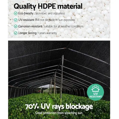 Come summer, you may want to provide some sun screen?for your plants in the form of our Shade Cloth. Itll not only provide protection for your plants from the harsh Australian climate, but also help to make your greenhouse environment more friendly to your horticultural endeavours. You can use our Shade Cloth to cover your shade house skeleton or greenhouse glazing to keep out pets, predators and people as well as strong wind.