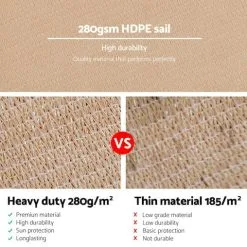 Designed to be a permanent covering, our Shade Sail is made from highly breathable 280g/m2 commercial grade 100% polyethylene fabric. This allows cooling air to pass through and help keep the under shade areas well ventilated. The material also blocks up to 98% of harmful UV rays and is all-weather proof to suit Australian climatic conditions. Plus, the material is further enhanced with Americhem UV-resistant additive from the USA to prolong its UV protection effectiveness.