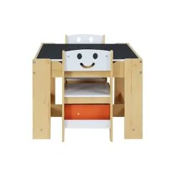 Gift your kids their own space to play, create, learn, and eat! Our Keezi kids’ table and chair set makes a perfect nook for your little ones to play, show off their creativity, do homework, and have meals like a grown-up. This gorgeous ensemble is extremely versatile and sure to match your kid’s room theme with its white and natural tones. Featuring a child-safe and convenient design, this set features sturdy MDF board construction and non-woven for durability and for stability. The non-toxic and eco-friendly paint and smooth edges make it safe for kids. This set also comes with hidden compartments and foldable boxes to store and hide away your kid’s toys, books, and other stuff. The two chairs and wide table allows your kid to play with mates comfortably, and the air-gap handles of chairs make it easy to access. Our table and chair set also feature a reversible desktop with chalkboard attachment that enables you kids to practice, scribble, and draw. Watch your kids have limitless fun and more giggles with their playmates!
