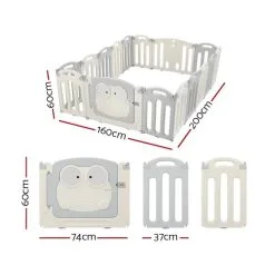 As a parent, sometimes you need a moment to catch your breath while keeping a watchful eye on the little ones. Keep your children safe and sound while you work with a Keezi Baby Playpen. The pen is made from quality HDPE material that is child-safe, non-toxic and easy to clean. It features a flexible 16-panel arrangement with no sharp edges and a safe 60cm height to prevent your child from crawling out. Each panel is connected to a hinge, and the main door panel has a safety lock to prevent a cheeky escape. Anti-slip suction cups keep the playpen firmly in one place. Easily assemble, fold and unfold the playpen for portability and simple storage(The door needs to be removed to fully fold). When you need a safe space for your child, Keezi has you covered with the Keezi Baby Playpen.