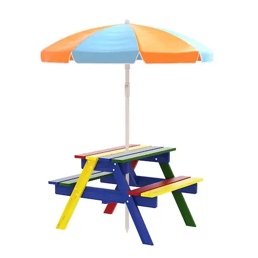 Gift your kids their own space to play, create, and eat! Our Keezi kids’ interconnected picnic table and bench set makes a perfect nook for your little ones to play under the sun, show off their creativity, and have meals like a grown-up. This gorgeous ensemble is perfect for indoor and outdoor use. Featuring a child-safe and convenient design, this set features sturdy fir wood construction for durability and a triangle structure for stability. This set also comes with a height-adjustable umbrella in beautiful shades that you can install to block sunlight on harsh sunny days. You can even fold the umbrella and store it for later use. Watch your kids have limitless fun and more giggles with their playmates!