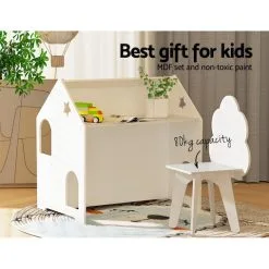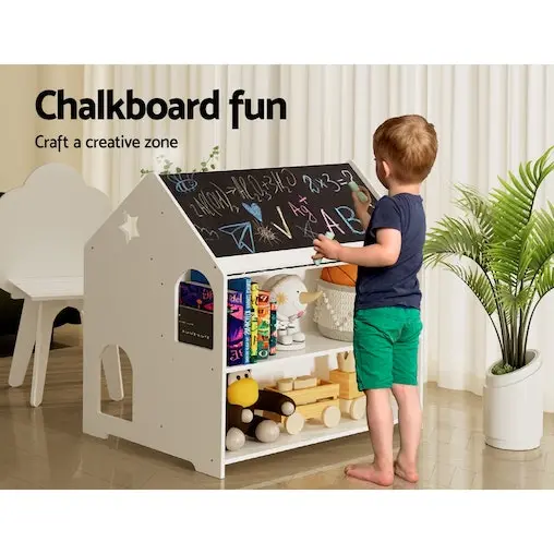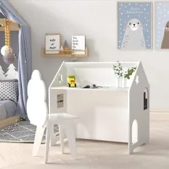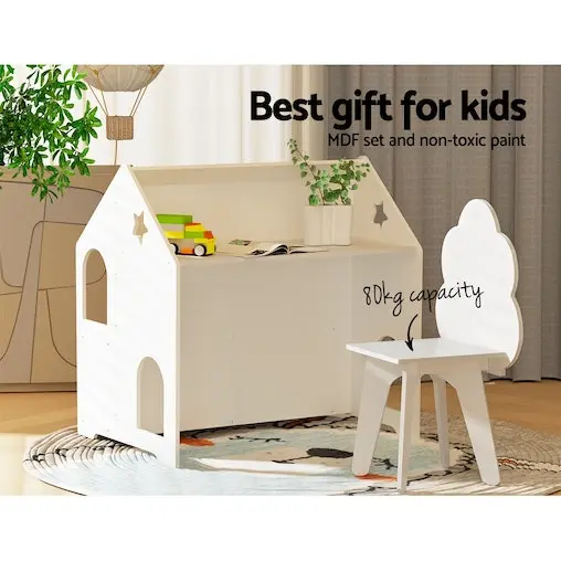 Gift your kids the perfect playset with a Keezi Kids Table and Chair Set. Recommended for ages 3 and up, this home-shaped hutch is the perfect piece of unique decor that suits any room of the home and promotes creative play. Encourage your child to draw, read, write and play all from the same spot. The table and chairs are made from durable MDF board and non-toxic paint for a long-lasting piece that will endure all kinds of play. It’s not just a table – the piece also comes with two storage compartments perfect for books and toys, and a chalkboard to keep little hands busy (and off your walls!). When you’re finished, the chair fits neatly under the table to create a single structure, perfect to save space. The smooth finish makes it incredibly easy to clean – just wipe and go! It’s also easy to assemble with the included instructions, so you can have it ready to go right away for your kids’ room, cubby, or playhouse. Best of all, the set is EN71 European Safety of Toys certified, so you know your little ones are in good hands. Spark your children’s imagination, fuel their interests and encourage creative play with the Keezi Kids Table and Chair Set.