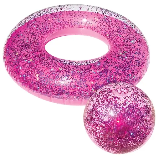 2pc Land & Sea Bling Inflatable Swim Ring & Ball Set Pink