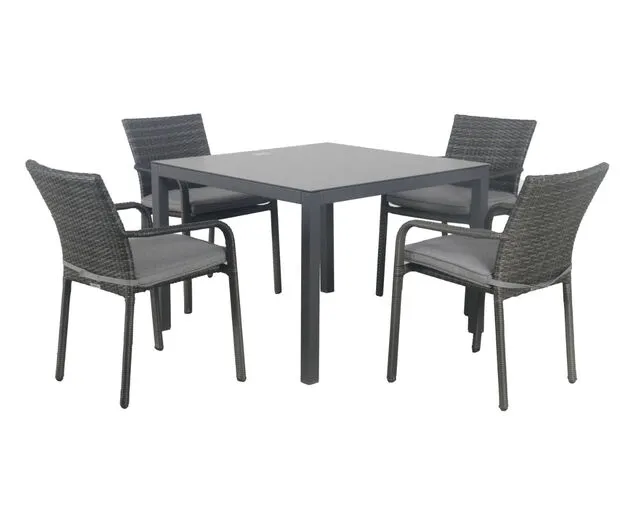 The Larache-Boston 5 Piece Mixed Dining paired with the printed ceramic look Boston tables offering great style and value. Harmonised colours allow a wide range of mix and match across the Boston/Jette/Larache furniture ranges. The classic Larache wicker dining chairs include a comfortable seat cushion for added comfort. The Jette table has a 3 year comprehensive warranty while the Larache Dining Chairs have a 1 year comprehensive warranty.