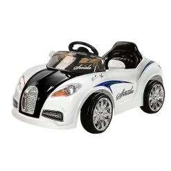 Our Bugatti ride on car is sure to impress your little driver with its looks, performance, and charisma. It boasts a uniquely beautiful and dynamic exterior design, a brilliant finish, and a solid build. Available in black and white, and black and orange models, this ride on Bugatti car has powerful twin motors for exhilarating performance and thrilling rides, heavy-duty suspension for smooth ride, premium anti-slip tyres, and a spacious seat with an adjustable safety belt for safety and comfort. Plus, it has stunning headlights for a brilliant presence, and other functions like MP3 connectivity, music, forward/reverse, key start, and allow/high speed button for a real-like driving experience. Furthermore, the gradual acceleration and deceleration prevents sudden jerks or stops. The remote-control function and EN71 Standard Safety of Toys certification ensure the safety of the child.