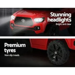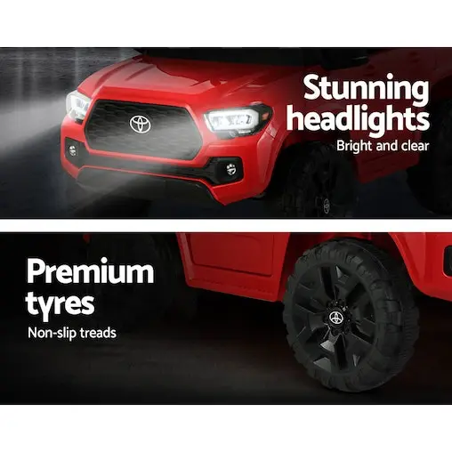 A perfect gift to your little drivers, our Rigo officially licensed Toyota Tacoma ride on car is designed to provide a real-like driving pleasure and experience. It’s sure to make your passionate drivers happy with its looks, performance, and charisma and help foster gross motor skills in them. Our ride on car features a stylish and robust exterior design with a stunning lacquer finish. It has all-wheel suspension for shock-absorbing and ultimate comfort, premium slip-resistant tyres, smooth acceleration to prevent sudden jerks and stops, storage space for toys, and a spacious seat with a safety belt for maximum comfort and protection. Plus, it has bright headlights, powerful 70W twin motors, smart keyless start, and other functions like MP3 connection, flashing lights, horn, control board, forward/stop/reverse motion, and foot pedal switch for a real-like driving experience. Our ride on car is battery operated with 8-12 hours per full charge and comes with a SAA-approved charger for safer and faster charging. With two control modes, the adult remote-control function and EN71 Standard Safety of Toys certification ensures the safety of your child. Purchase this real-like and robust Rigo Toyota Tacoma ride on car and watch your kids having unlimited fun with their mates.