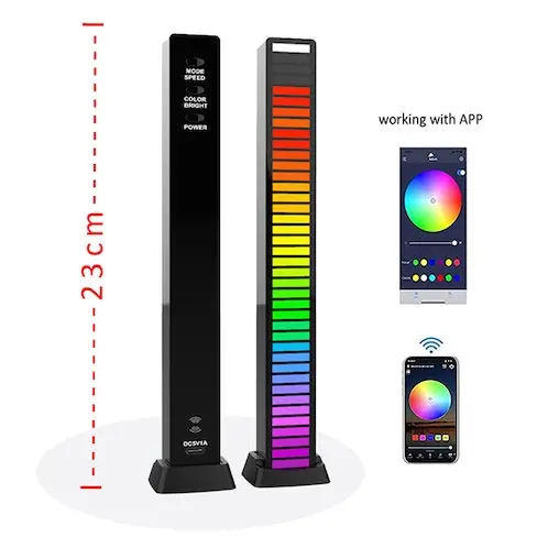 - Multicolor Music Levels Lights: with 40 colorful LED lamp beads, highly sensitive mic and noise cancellation function, atmosphere light can realize dynamic expression of music and human voice.