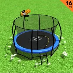 Basketball set! – This trampoline is supplied with a basketball kit to add even more fun for the kids. This includes the backboard and ring, net, ball, and pump!
