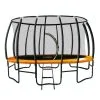 Basketball set! – This trampoline is supplied with a basketball kit to add even more fun for the kids. This includes the backboard and ring, net, ball, and pump!