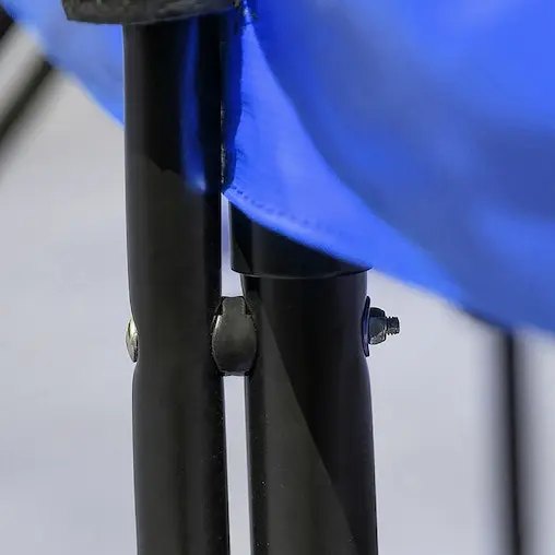 This trampoline uses linked legs for superior stability and the structure of the legs also minimizes the tendency for legs to dig into the ground. Legs also feature reinforced joint bars to enhance strength and stability.