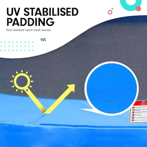 The padding cover of the trampoline is UV stabilized and has embedded nylon mesh, ensuring the padding will last under the harsh Australian sun.
